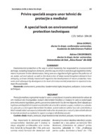 Privire specială asupra unor tehnici de protecție a mediului Protecţia mediului reprezintă modul în care s-a reacţionat împotriva deteriorărilor aduse de om mediului său înconjurător, inclusiv elementelor biosferei şi modului în care se acţionează, prin instrumente legislative, pentru prevenirea deteriorării lui de mai departe, fiind văzută ca o luptă pe cale legislativă împotriva poluărilor de orice fel a aerului, a apei, a solului şi a subsolului, precum şi a distrugerii elementelor biosferei, având rădăcini adânci încă din antichitate şi fiind tratată iniţial sub aspectul elaborării măsurilor de protecţie a naturii şi dezvoltată ulterior la nivel de protecţie a mediului în raport cu viaţa şi sănătatea omului.