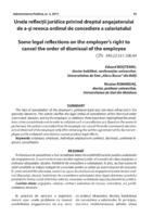 Unele reflecţii juridice privind dreptul angajatorului de a-şi revoca ordinul de concediere a salariatului În literatura de specialitate a fost acreditată ideea revocabilităţii actelor juridice unilaterale ale angajatorului. În acest articol este elucidat regimul juridic al revocării de către angajator a ordinului (dispoziţiei, deciziei, hotărârii) de concediere a salariatului. În plus, au fost scoase în relief condiţiile ce trebuie îndeplinite cumulativ pentru a valida un asemenea act de revocare. În urma cercetărilor efectuate, autorii au ajuns la concluzia că angajatorul poate revoca ordinul (dispoziţia, decizia, hotărârea) de concediere a salariatului doar după obţinerea acordului prealabil în formă scrisă al fostului salariat, revocarea unilaterală neproducând efecte juridice.