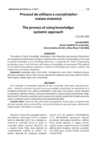 Procesul de utilizare a cunoştinţelor: tratare sistemică Sunt analizate și interpretate noțiunile de date, cunoștințe, informație, importanța teoretico – practică a acestora. Accentul este pus pe evoluția cunoștințelor, pe necesitatea de a actualiza cunoștințele, de a utiliza cunoștințele în mod optim. Este propus „lanțul” generării cunoștințelor, utilizării acestora, sunt enumerați factorii cu impact asupra cunoștințelor. Materialul poate fi util pentru practicieni, pentru guvernanți, pentru studenții de la toate structurile, pentru masteranzi, pentru colaboratorii de la instituțiile științifice.