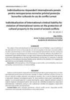 Individualizarea răspunderii internaționale penale pentru nerespectarea normelor privind protecția bunurilor culturale în caz de conflict armat Subiectul individualizării răspunderii internaționale penale în cazul nerespectării normelor internaționale privind protecția bunurilor culturale în cadrul conflictelor armate a fost pus în discuție datorită evoluției dreptului internațional umanitar, dar, în special, datorită apariției și dezvoltării dreptului internațional penal. Or, dacă problema răspunderii internaționale a statelor nu mai suscită polemici în rândul doctrinarilor, atunci, datorită ultimelor evoluții în materia dreptului internațional penal, este necesar de a identifica fundamentul răspunderii internaționale a individului, precum și de a determina condițiile de angajare a răspunderii internaționale penale a persoanei fizice.