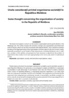 Unele considerații privind organizarea societății în Republica Moldova Problematica articolului încorporează organizarea societății și particularitățile acesteia în cazul Republicii Moldova. De asemenea, se accentuează evoluția schimbărilor în organizații, cu precădere în noile democrații, în care factorul intern este net inferior în relația cu factorul extern, inclusiv în Republica Moldova, și importanța asigurării organizării cu un cadru legal adecvat și raportat la realitățile mediului social. Realități, care înseamnă că activitatea fiecărei organizații este îndreptată spre satisfacerea nevoilor și necesităților membrilor societății. Iar pentru cele din domeniul administrației publice aceasta reprezintă chintesența integrării lor în mediul comunitar dintr-o societate multiculturală.