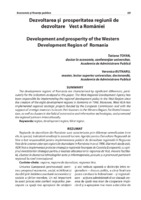 Dezvoltarea și prosperitatea regiunii de dezvoltare Vest a României Regiunile de dezvoltare din România sunt caracterizate prin diferențe semnificative între ele, în special, indicatorii analizați în această lucrare. Agenția pentru Dezvoltare Regională de Vest a fost responsabilă pentru implementarea politicii de dezvoltare regională în Regiunea Vest de la crearea celor opt regiuni de dezvoltare în România în anul 1998. Mai mult decât atât, ADR Vest a implementat proiecte strategice regionale finanțate de Comisia Europeană, cu sprijinul investitorilor strategici pentru a localiza afacerea lor în regiunea de Vest, inovare facilitată, clustere în domeniul tehnologiilor auto și informaționale, precum și a promovat partenerii regionali la nivel internațional.