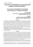 Asigurarea sustenabilității în procesul planificării bugetare în Republica Moldova Eficienţa sau eficacitatea cheltuielilor publice exprimă o dimensiune optimă a unui raport determinat între eforturile financiare şi efectele comensurabile sau estimative obtenabile pe seama obiectivelor finanţate de către stat. În condiţiile în care nevoile publice reclamă bunuri publice de valori ridicate, în continuă creştere şi diversificare, pe de o parte, iar resursele financiare ale statului nu sporesc la fel de rapid, se creează un decalaj de ritm, care conduce la o stare permanentă de insuficienţă a resurselor necesare. Acest fenomen se desfășoară în condiţiile în care, în mod conştient, guvernul procedează la ierarhizarea nevoilor sociale şi, respectiv, la dimensionarea cheltuielilor publice, în funcţie de mai multe criterii (prioritate, oportunutate, eficienţă sau eficacitate a cheltuielilor publice, calitate a serviciilor publice etc.).