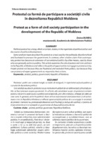 Protestul ca formă de participare a societăţii civile în dezvoltarea Republicii Moldova Protestul politic are o istorie lungă, cu toate că nesigură, în repertoriul acțiunii politice şi cursului de dezvoltare politică. Unii analişti au descris protestul ca un instrument utilizat de cei defavorizați şi frustrați politic să facă presiuni asupra guvernării. În schimb, alți cercetători susțin că protestul contemporan a devenit o extensiune a politicii convenționale, prin alte mijloace, utilizate de către cei care sunt, în general, activi în politică. Acest articol examinează rolul protestului şi al activismului civic în Republica Moldova şi reflectă oportunitățile politice de a se angaja în activități de protest. Oamenii nu protestează deoarece sunt frustrați şi excluşi din politică, ci pentru că ei pot protesta şi ei se aşteaptă ca guvernarea să răspundă la acțiunile lor