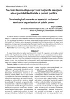 Precizări terminologice privind noțiunile esențiale ale organizării teritoriale a puterii publice În scopul elaborării unui cadru legal coerent în materie de organizare teritorială a puterii publice este important de a clarifica conținutul noțiunilor cu care se operează în acest domeniu. Incoerența conceptuală privind utilizarea noțiunilor esențiale persistă în sistemul legislativ al Republicii Moldova, fapt care generează ambiguități și interpretări eronate. Pentru evitarea acestor situații, este important de a conceptualiza sensul noțiunilor esențiale cu care se operează atât în mediul academic cât și în sistemul autorităților publice.