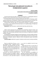 Tehnologii educaționale inovative în învățământul superior Astăzi, școala superioară este dezvoltarea de competențe. Această evoluție, care solicită nu numai schimbări în selectarea și armonizarea obiectivelor și conținutului învățării, dar, de asemenea, afectează modul de a proiecta și implementa situații de predare / învățare . Din perspectiva teoretică, prezentul articol presupune o serie de analize ale literaturii de specialitate menite să configureze un cadru explicativ coerent în acord cu problematica investigată, respectiv impactul stilurilor educaționale asupra rezultatelor studenților.