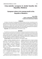 Criza valorilor europene în rândul tinerilor din Republica Moldova Actualmente, în contextul proceselor politico-economice şi socioculturale contemporane, valorile europene îşi pierd din importanţă şi profunzime, actualitate şi dominanţă, fiind ignorate sau date uitării. Percepţia societăţii contemporane asupra acestora se schimbă, generând o criză spirituală profundă. Este evident că o renaştere a vieţii spirituale s-ar produce dacă în educaţie s-ar reveni la valorile româneşti şi europene tradiţionale, ar fi combătut individualismul şi materialismul, ar fi formată o elită intelectuală şi ar fi împărtăşite valorile creştine.