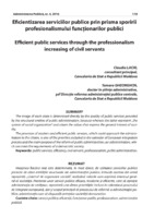 Eficientizarea serviciilor publice prin prisma sporirii profesionalismului funcționarilor publici Imaginea fiecărui stat este determinată, în mod direct, de calitatea serviciilor publice prestate de către entitățile structurale ale administrației publice, întrucât acestea din urmă reprezintă „sistemul de organizare socială”, realizând valorile care exprimă interesul general al societăţii. Prestarea unor servicii publice eficace, moderne şi eficiente, care să apropie administrația de cetăţean, reprezintă una dintre priorităţile incluse în calendarul procesului de integrare europeană, dar şi scopul principal al procesului de reformă a administraţiei publice, administraţie care să răspundă cerinţelor societăţii democratice.