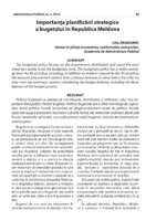 Importanţa planificării strategice a bugetului în Republica Moldova Politica bugetară se axează pe constituirea, distribuirea şi utilizarea celui mai important fond public: fondul bugetar. Politica bugetară are o sferă mai largă de cuprindere decât politica fiscală, incluzând, pe lângă problemele vizate de politica fiscală, opţiunile asupra procurării resurselor sub alte forme ale veniturilor ordinare decât cele fiscale (veniturile nefiscale), ca şi cele privind soldul bugetar, inclusiv derularea procesului bugetar.