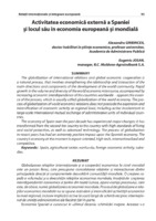 Activitatea economică externă a Spaniei şi locul său în economia europeană şi mondială Globalizarea relaţiilor internaţionale şi a cooperării economice la nivel mondial este un proces firesc, care presupune consolidarea relaţiilor şi interacţiunea dintre principalele direcţii şi componentele dezvoltării comunităţii mondiale. O creştere rapidă a volumului şi a diversităţii relaţiilor economice mondiale, însoţită de creşterea interdependentei economice a ţarilor din toată lumea, apare esenţa procesului, care este, de obicei, numit globalizarea economiei mondiale. Procesul de globalizare a relaţiilor economice mondiale nu se opune extinderii şi intensificării activităţii economice la nivel regional, inclusiv implicării active la scară largă de schimb reciproc internaţional de unităţi administrative ale fiecărei ţări în parte. Economia Spaniei a cunoscut în ultimul deceniu schimbări majore. Aceasta s-a transformat dintr-o ţară slab dezvoltată într-o ţară cu standarde ridicate de viaţă şi de protecţie socială, precum şi o tehnologie avansată. Procesul de globalizare a avut în ultimii ani un impact extrem de pozitiv asupra economiei spaniole.