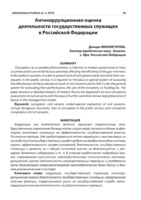 Антикоррупционная оценка деятельности государственных служащих в Российской Федерации Коррупция, как комплексное явление, присущее современному государственному управлению большинства стран мира, является одним из факторов, негативно влияющих на эффективность государственной власти. По мнению автора, для предотвращения актов коррупции и минимизации их последствий на государственной службе требуется внедрить особую систему оценки эффективности профессиональной деятельности государственных служащих и увязать ее с общей системой оценки их деятельности, с размером денежного содержания и т. п. В статье представлен подробный анализ современного российского законодательства относительно антикоррупционной оценки деятельности государственных служащих и предложены пути дальнейшего совершенствования законодательной базы России в данном управленческом кластере.