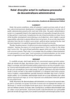 Rolul diverşilor actori în realizarea procesului de descentralizare administrativă În condiţiile actuale, când toată atenţia este concentrată asupra sarcinilor primordiale ale statului de drept, dezvoltarea culturii şi economiei, consolidarea statului de drept în societate, rolul administraţiei publice predomină ca sarcina principală a statului. Sistemul administraţiei publice este indisolubil legat de punerea în aplicare a politicii de stat prin activităţile pe care le efectuează. În special, subliniază rolul administraţiei locale ca factor de bază al dezvoltării localităţilor şi în atingerea obiectivelor propuse, ceea ce implică o responsabilitate specială transmisă oficialilor aleşi locali şi funcţionarilor publici. Ca o activitate, administraţia locală are ca scop obţinerea unor valori politice exprimate prin lege, iar cel mai important este satisfacerea interesului general al comunităţii locale. Astfel, fenomenul de descentralizare administrativă se va bucura de maximă atenţie, pentru că esenţa unui guvern local este că acesta este mai aproape de cetăţeni şi îi deserveşte. Şi nevoia autorităţilor locale apare atunci când există o comunitate locală, care are interese comune. De aceea, este o analiză de ce problema descentralizării este un subiect actual permanent. Autonomia locală şi descentralizarea sunt principalele pietre de temelie ale organizării şi funcţionării autorităţilor administraţiei publice locale.
