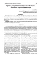 Aportul programelor europene la reformarea sistemului naţional de educaţie Fiind o țară europeană, Republica Moldova a tins spre un viitor european, elaborând și implementând un şir de reforme inovatoare şi sistemice în toate sferele de activitate a Guvernului. La reformarea sistemului naţional de educaţie au contribuit, în mare parte, programele europene de infrastructură şi cooperare în învăţământul superior, axate pe modernizarea sistemului de învățământ superior, crearea de parteneriate, mobilitatea academică și internaţionalizarea învăţământului superior.