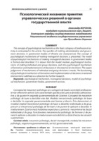 Психологический механизм принятия управленческих решений в органах государственной власти The concept of psychological mechanism as the basic category of professional activity is articulated in the article. The specifics of making administrative and government decisions in government bodies of Ukraine are characterised. The concept of psychological mechanisms of making managerial decisions is presented. The model of psychological mechanisms of making managerial decisions in government bodies is formed and described. It is shown that the model involves psychological mechanisms of making individual and group decisions, and also psychological mechanism of formation and implementation of decisions in the external environment. The expert judgement of mechanisms of individual and group decisions is made. The functioning of psychological mechanism of formation and implementation of decisions in external environment is defined as a direction for further research.