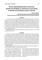 GIS for optimizing location of primary health care facilities in rural areas: a case study in Barskyi and Sokalskyi rayons, Ukraine The article examines possibilities of using GIS technology in decision-making in health care. The software ArcGIS for Desktop (ESRI), application ArcMap, was used to complete the task. The capabilities of geospatial analysis to assess health care at local level have been considered. The GIS analysis effectively identifies problem areas with limited access of the population to primary health care (case study: Barskyi Rayon, Vinnytsya Oblast and Sokalskyi Rayon in Lviv Oblast). It is proved that geospatial analysis is a useful tool for problem solving on forming an optimal network of primary health care through restructuring and conversion of existing facilities in ambulatory of general practice / family medicine.