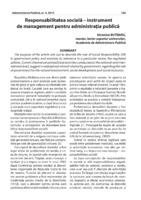 Responsabilitatea socială – instrument de management pentru administraţia publică The purpose of the article sets out to describe the role of Social Responsibility (SR) in government policy and examine its relevance to a particular sector, the regulated utilities. Current theoretical and political activities conducted at the national and international level, suggest a widespread interest shared by government, regarding the role of government for the natural environment, social development and social inclusion.