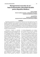 Managementul resurselor de sol – baza fundamentală a dezvoltării durabile pentru Republica Moldova Integrated management of soil resources and local community infrastructure of the Republic of Moldova can be resolved at the state level with strengthen the efforts of all participants from administrative, scientific and industrial sectors. The benefits of this action can be obtained by aggregation of factors and consequences that have or may be held as a result of regulatory decisions in order to create a favorable climate for management in the structure of local government, with optimal results for the development of national economy.