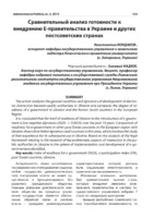 Сравнительный анализ готовности к внедрению Е-правительства в Украине и других постсоветских странах The article analyzes the general condition and dynamics of development of electronic interaction between public authorities in Ukraine and compares the degree of readiness of e-government in Ukraine and the former Soviet countries in the European Region. It is concluded that the level of readiness of Ukraine to the introduction of e-government is low negative (dynamics EGDI - (- 0.0424) over the past 10 years. Comparison of readiness for e-government in other post-Soviet countries in the European region with Ukraine shows their better dynamics and successes in this area, which involves the study of their experience for its subsequent use in Ukraine. Based on the analysis of the legal framework relating to the research of key problematic aspects of interaction in the public authorities in Ukraine in the sphere of implementation and development of e-governmentare identified.