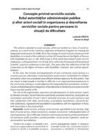 Concepte privind serviciile sociale. Rolul autorităţilor administraţiei publice şi altor actori sociali în organizarea şi dezvoltarea serviciilor sociale pentru persoane în situaţii de dificultate This article is devoted to social services, which are tackled as a form of social assistance, as a result of the continous objectives of National Program on creating the integrated social system for 2008- 2013, the strategy of social inclusion of persons with disabilities. As a result of the ratification of the UN Convention on the Rights of Persons with Disabilities by Law nr. 166- XVIII of July 9, 2010, which has marked 5 years since its ratification, in the period from 5 to 10 July 2015, within the framework of International Scientific- practical conference on the topic ,,Five years after the ratification of the UN Convention on the Rights of Persons with Disabilities. Practical and Judicial aspects’ analysis.’’ At this time, the creation and development of new community social services is a ceaseless process, alternative institutionalized social services (residential) for children and adults, which are considered more efficient and less expensive for this system. They are meant to keep people or families in difficulty in an organizational propinquity to the community, having as a main objective the marginalization’s prevention, social ex¬clusion and facilitating the integration of beneficiaries in the family and community for improving their quality of life. The role of the organization, operation and development of social services reverts to: Ministry of Labor, Social Protection and Family and other Ministries, local public ad¬ministration authorities of level I and II, territorial structures of social assistance and their subdivisions with other social actors, associations, foundations, non-profit pri¬vate institutions, registered and accredited in accordance with the legislation in force, with the activity in the social sphere