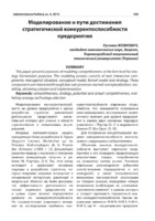 Моделирование и пути достижения стратегической конкурентоспособности предприятия This paper presents a process of modeling competitiveness at the firm level for strategy formulation purposes. The modeling process consists of next interactive components: managerial situation, conceptual model, formal model and strategy. These components are interacted through four sub-processes named conceptualization, modeling, obtaining solution and implementation.