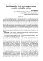 Relațiile publice - instrument de promovare a imaginii instituţiilor publice The activity of „public relations” is a necessary request for any organization, in order to reach the imposed objectives, a inherent condition of its efficient functioning, able to settle the most important inter-human relationships. The public relations represents the premise in order to exercise the management activity and the management process functions. Only by means of an efficient communication are the planning and programming, the coordination and control, the motivation, consulting and active participation of the organization members possible, capable to accomplish the aimed goals. Every single moment belonging to the organization activity is based on the efficient communication and construction of the image, as a modality to focus and correlate the efforts. In this article we try to underline the importance of communication strategies in activity of public institutions for a efficient construction of its image in the new reality.