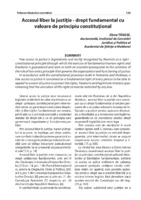 Accesul liber la justiţie - drept fundamental cu valoare de principiu constituţional Free access to justice is legislatively and tacitly recognized by theorists as a right - constitutional principle through which the exercise of fundamental human rights and freedoms is guaranteed and seen as both an essential prerequisite to the existence of the rule of law and a principle that governs the organization and functioning of justice. In accordance with the constitutional provisions both in Romania and Moldova, a free access to justice is conceived as a fundamental right of every person to be able to appeal to a court of justice to protect the rights, freedoms and legitimate interests guaranteeing that the execution of this right cannot be restricted by any law.