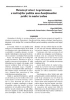 Metode și tehnici de promovare a instituțiilor publice sau a funcționarilor publici în mediul online Promotion is the key to success, whether it comes from a company at a public institution or a person. Promotion is the element that makes us known, heard and understood, is the bridge that connects different persons seeking promotion and target audience.
