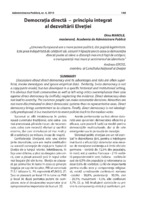 Democrația directă – principiu integrat al dezvoltării Elveției Discussions about direct democracy and its advantages and risks are often superficial, invoke stereotypes and ignore empirical data. Evidently, Swiss democracy is not a copy/paste model, but has developed in a specific historical and institutional setting. It is obvious that both conservative as well as left-wing critics overemphasize their case against direct democracy by (wilfully) neglecting the evidence. Direct democracy does not lead to anarchy. The common people can make reasonable decisions. Minorities are not more discriminated in direct democratic systems than in representative ones. Direct democracy brings contentment to its citizens. Finally, direct democracy is not ideologically predisposed. It is a mechanism to revert policies back to the median voter.