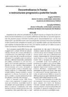 Descentralizarea în Franţa: o restructurare progresivă a puterilor locale L’expérience des réformes précédentes, les débats récents sur l’impact fiscal de la réforme de decentralization ou sur la place définitive de État dans la nouvelle organisation des pouvoirs locaux montrent toutefois que la decentralization est « un art tout d’exécution » qui doit démontrer, dans la pratique des nouveaux instruments juridiques et dans l’exercice des compétences locales, qu’un équilibre stable a pu être trouvé entre une tradition institutionnelle encore vive, une attente sociale qui se réfère souvent à l’État et les besoins d’une démocratie moderne.