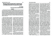 Rolul relaţiilor politice şi administrative în procesul de implementare a Strategiei naţionale de descentralizare The adoption by the Parliament of the Republic of Moldova in April 2012 of the National Strategy on Decentralization was an important step for reforming public administration system and ensuring real autonomy of local powers. It comprises also a lot of recommendations that have to be implemented in order to create a stable and efficient framework for developing the public administration system, as well as the political one. In this context, the paper will emphasize the role of political and administrative relations in the implementation process of National Strategy on Decentralization`s action plan, as well as problems that occurred in the process between politicians and civil servants, passing through the transition period.