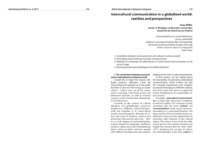 Intercultural communication in a globalized world: realities and perspectives I would like to begin this lecture with Eugen Ionescu’s statement „There are many things that separate us in the world, but there is also one that brings us closer: culture”. Culture sums up all the values, norms, meanings, intentional actions and behavioral attitudes, as well as material supports, which ensures their dissemination and dynamism.