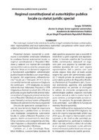 Regimul constituţional al autorităţilor publice locale cu statut juridic special The main topic treated in the article by its author is legal corelation beetwen central authorities’ responsabilities and local autonomous authorities’ competences within issues what is subject of interest for both levels of administration.
