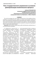 Роль государственного управления в условиях демократизации политического процесса The article investigates the role of public administration in the conditionsof democratization of the political process. Analyze such trends and principles of democratization, the development of parliamentary and parliamentary coalitions, local government, electoral campaigns, freedom of speech in the media, etc. The main theoretical approaches to the process of democratization marked the components of good governance in a democratic political regime.