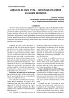 Acţiunile de stare civilă – semnificaţie teoretică şi valoare aplicativă The Civil Status records are registered in an organized way in the Republic of Moldova. The rules of naming which form the legal background of certain civil status registrations, differ significantly, and are partly deeply rooted in society, culture, and language. The rules of family law, and of private law, which form the legal background of civil status registrations, differ significantly, and are partly deeply rooted in society and culture. While practically all civil status registration offices are equipped with personal computers and other technology, some systems are, in essence, paper-based, other systems are fully digitised.