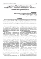 Aspecte multifactoriale ale sistemului de adoptare a deciziilor administrative în cadrul complexului agroindustrial Presently, the problem of qualified administrative decision taking gains a great importance. In the given article the specific characteristics of a multifactorial system of administrative decision taking are regarded, as well as the implementation process of analyzed adaptive informational technologies and the forecasting in agroindustrial complex.