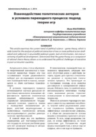 Взаимодействие политических акторов в условиях переходного процесcа: подход теории игр This article examines the current trend of political science – game theory, which is wide lusted for the analysis of political interaction of two or morе political actors (individual and collective) in anunstable political system, lack of information, risk and uncertainty of political development. Determined that the game theory as a component of rational choice theory allows us to understand the political challenges of transition in post-communist countries.
