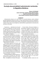 Evoluţia descentralizării administrativ-teritoriale în Republica Moldova Administrative division of a state reflects an essential element, which achieved through legislation brings the system of state administration and local subsystems, falling under the territorial aspect, politics and organizes social and economic life of a nation. In this order we must adjust our administrative organization to streamline the activities of the state.