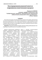 Конструирование решений власти в современном политическом процессе The article investigates the design decisions of government (public administration and local self-government in the modern political process. Understanding the social and technological features of the components of decision-making power and democratization opens the way to a knowledge of the process of political interaction between the government and the society.