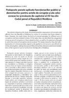 Pedepsele penale aplicate funcţionarilor publici şi demnitarilor pentru actele de corupţie şi ale celor conexe lor prevăzute de capitolul al XV-lea din Codul penal al Republicii Moldova This article in based on the study of criminal penalties imposed on civil servants and officials from the Republic of Moldova for crimes of corruption and those related to them. However, this study shows the limits of criminal penalties for different acts of corruption and those related to them. At the same time, are identified the categorized crimes as acts of corruption or those related to them, as well as the spectrum of people to which the crimes of corruption can be involved. The study is based on how the individualization of criminal penalties regards to be applied to civil servants and officials for crimes of corruption, taking into account the criminal law, decisions and recommendations of the Supreme Court of Justice from the Republic of Moldova.