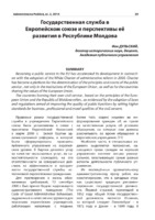 Государственная служба в Европейском союзе и перспективы её развития в Республике Молдова Becoming a public service in the EU has accelerated its development in connection with the adoption of the White Charter of administrative reform in 2000. Charter has become a platform for the determination of the principles and norms of the public service , not only in the institutions of the European Union , as well as for the countries sharing the values of the European Union. The countries forming their own civil service , based on the principles of the European Union and the Republic of Moldova refers , as evidenced by the adoption of laws and regulations aimed at improving the quality of public functions by setting higher standards for business , professional and moral qualities of the civil servant.