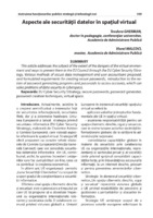 Aspecte ale securităţii datelor în spaţiul virtual This article addresses the subject of the extent of the dangers of the virtual environment and ways to prevent them in the EU Council through the EU Cyber Security Sttrategy. Various methods of secure data management and user accountsare proposed, and formulated requirements for creating secure passwords; introduction to the notion of password generating programs and passwords to access accounts, which can solve problems of data security in cyberspace.