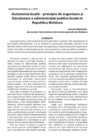 Autonomia locală – principiu de organizare şi funcţionare a administraţiei publice locale în Republica Moldova Local autonomy is the fundamental principle which underpins the development of local public administration. It is an element of „democratic principles common to all Member States of the Council of Europe” by regulating its legal and practical application makes it possible to decentralize power. Local autonomy makes possible to establish a distinct status of local and their governing bodies in relation to central government.