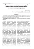 Политическая оппозиция как критерий демократических преобразований на постсоветском пространстве The article is devoted to topical issues of political theory and practice – the study of opposition. Conditions of opposition from the democratic political regime and features functioning opposition in postcommunist countries.