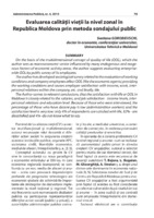 Evaluarea calităţii vieţii la nivel zonal în Republica Moldova prin metoda sondajului public On the basis of the multidimensional concept of quality of life (QOL), which the author sees as macroeconomic vector influenced by many endogenous and exogenous factors of economic activity areas, the author suggests evaluating enterprisewide QOL by public survey of its employees. The author has developed sociological survey related to the evaluation of working conditions and company employees affect QOL (like the economic agents),providing the working conditions and causes employee satisfaction with income, work, interpersonal relations within the company, etc. and finally, life. The Author comes to relevant conclusions, that the satisfaction with life or QOL in Moldova is closely related to the salaries, and job satisfaction - income levels, interpersonal relations and education level. Because of those who were interviewed, the percentage of those who have decent pay is low (administration workers) and the satisfaction level is very low: only 4% of respondents are satisfied with life, 82% - are dissatisfied and 4% -do not know what to say.