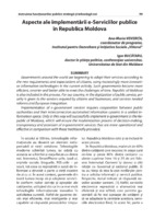 Aspecte ale implementării e-Serviciilor publice în Republica Moldova Governments around the world are beginning to adapt their services according to the new requirements and expectations of citizens, using increasingly more innovative information technologies in the current activity. Such governments become more efficient, smarter and better able to meet the challenges of time. Republic of Moldova is also included in this process. For our country, in the digitization of public service, priority is given to the services required by citizens and businesses, and services needed reforms and European integration. Implementation of e-government services requires cooperation between public authorities and their interconnection automated information systems in a unified information space. Only in this way will successfully implement e-government in the Republic of Moldova, which will ensure the modernization process of decision-making, transparency and provision of e-government services that are more operational and effective in comparison with those traditionally provided.