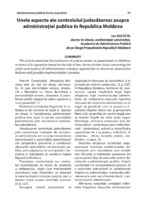 Unele aspecte ale controlului judecătoresc asupra administraţiei publice în Republica Moldova This article examined the institution of judicial review on government in Moldova in terms of its operation based on the rule of law. Are we review issues concerning the origin and essence of administrative concepts, approaches its doctrinal, caractristice features and possible implementation scenarios.