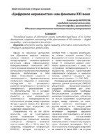 «Цифровое неравенство» как феномен ХХI века The political aspects of informative society, normative-legal bases of his further development, cooperant overcoming of the phenomenon of ХХI centuries – «digital inequality» – are investigated in the article».