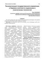 Технологизация государственного управления в Украине в контексте социальных и политических технологий This article analyzes the main trends of using management technologies in the political sphere and in the activity of public authorities in Ukraine.