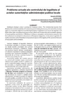 Probleme actuale ale controlului de legalitate al actelor autorităţilor administraţiei publice locale Moldova’s strategic vector is joining the European Union. This membership requires that Moldova has achieved stability of institutions guaranteeing democracy, the rule of law, human rights. An important objective of achieving European integration is to ensure the legality in all fields of the state, including local government, which will increase the administrative capacity of municipalities and districts. If Moldova is failing to strengthen administrative capacity, this fact will present an obstacle to the process of European integration. In the present agrticle, the author examines some theoretical and practical aspect of the legality of the control of the acts of local public administration.