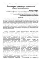 Правовое регулирование пенсионного обеспечения в Украине This article provides an overview of the pension system in Ukraine. Three levels of pensions are characterized: solidarity, savings and private pension provision. It shows the stages of formation of the legal regulation of the pension system. The study uses statistics on the number of pensioners and the average size of pensions. The article points out the key problems of effective functioning of the pension system. Separately, the author referred to the issue of discriminatory provisions of the pension legislation in need of reform. The overall conclusion of the need to codify pension legislation has been made. And in addition - the unification and harmonization of general and special pensions.